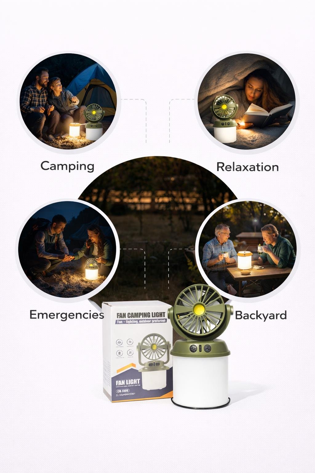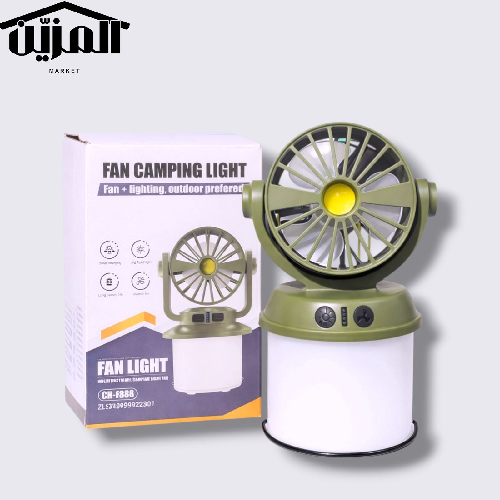 منتج عملي يجمع بين المروحة والإضاءة في جهاز واحد، مثالي للرحلات والتخييم والاستخدام الخارجي. يوفر إضاءة قوية مع مروحة منعشة لتجربة مريحة في أي مكان.